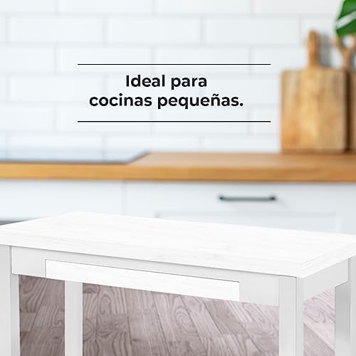 ESTRUCTURA SÓLIDA Y ESTABLE: esta mesa de cocina tipo libro con cajón de Astimesa con estructura de madera laminada blanca es sólida y estable, lo que asegura una superficie firme y segura para todas las actividades. La tapa de madera laminada es fácil de limpiar y resistente a las manchas y al agua, lo que la convierte en una opción práctica y duradera. Es una mesa muy fácil de instalar y combinará de forma perfecta con tus muebles.