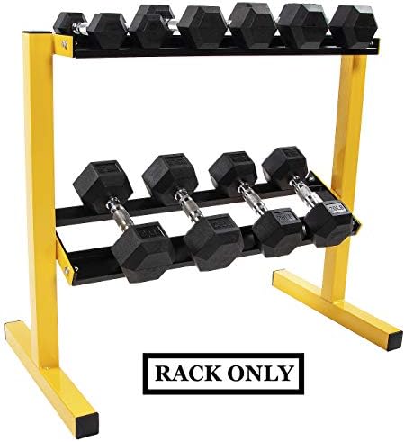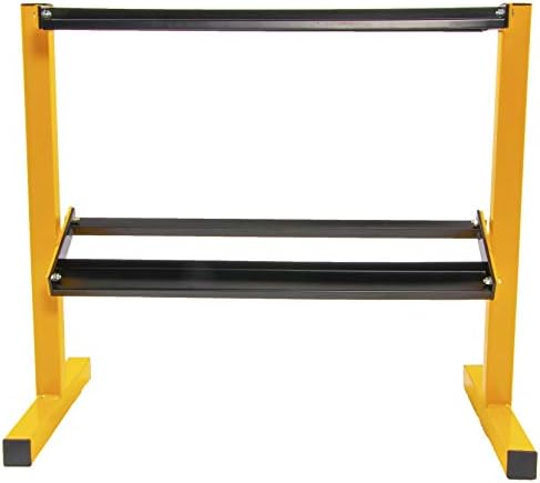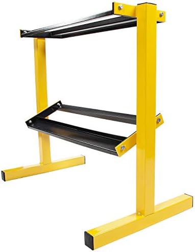 BalanceFrom Organizador de almacenamiento de pesas de 2 niveles para gimnasio en casa, capacidad de 600 libras, amarillo/negro