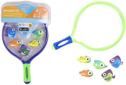 ¿EN PISTA PARA LA PESCA CON 5 PESCADOS? : Utilizable por niños a partir de 3 años, este juego de habilidad al aire libre permitirá a tu hijo aprender la precisión, dosificar su fuerza y contar los puntos en la facilidad y el buen humor. Composición del juego: Este juego consta de 1 red de red de 18 cm y 5 peces. Un gran regalo: Robusto y entretenido, este juego es ideal para ofrecer a los jóvenes amantes del juego al aire libre. Información de seguridad: El uso de este producto no es adecuado para niños menores de 3 años y debe ser supervisado por un adulto. Presencia de pequeños elementos.SIEMPRE MÁS DIVERTIDO! : La marca Blue Sky del grupo MGM ofrece una amplia selección de juegos y juguetes de verano y al aire libre para todas las edades: pistolas de agua, juegos deportivos, accesorios de playa y burbujas de jabón.