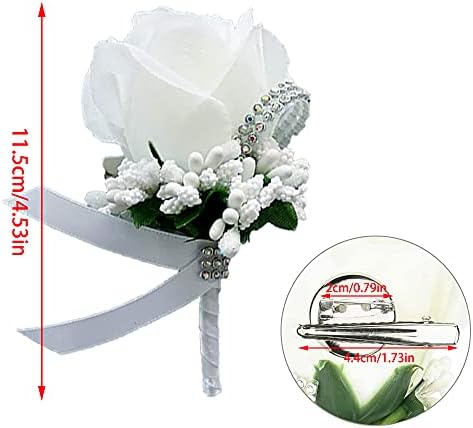 Boda Boutonniere Rosa Blanca, Rosas Boutonniere Hecho a Mano 4pcs Boda Muñeca Flor Ramillete Flor Corsage Boda Flor Corsage Boda Boda Flores Artificiales