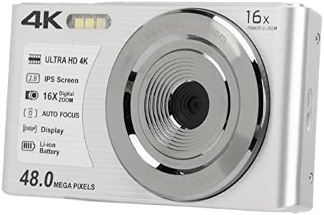 Cámara Digital 4K, Cámara Selfie para Niños, Pantalla de 2,8 Pulgadas, Cámara de Video de 48 MP con Zoom de 16X para Principiantes, Estabilización de Imagen, Expansión de 256 GB (Plata)