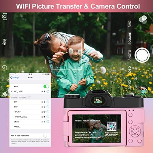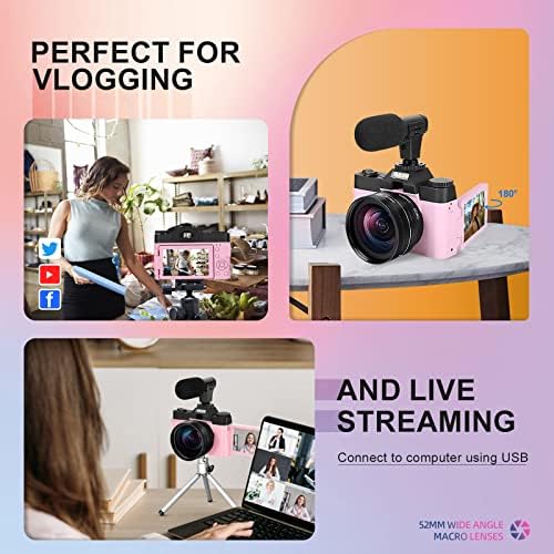 Cámara digital de vlogging 4K con pantalla abatible de 180°, WiFi, macro y lente gran angular, control de aplicación, micrófonos externos, zoom 16X, tarjeta TF de 32 GB, cámara para fotografía,