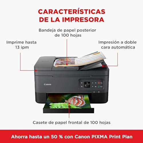 Canon Multifunción 3 en 1 PIXMA TS7450i-Apta para PIXMA Print Plan-Imprime Fotos sin Bordes, Doble Cara automática-ADF-WiFi-USB-Impresión/escaneo inalámbrico Desde Smartphone-Nube (Negra)