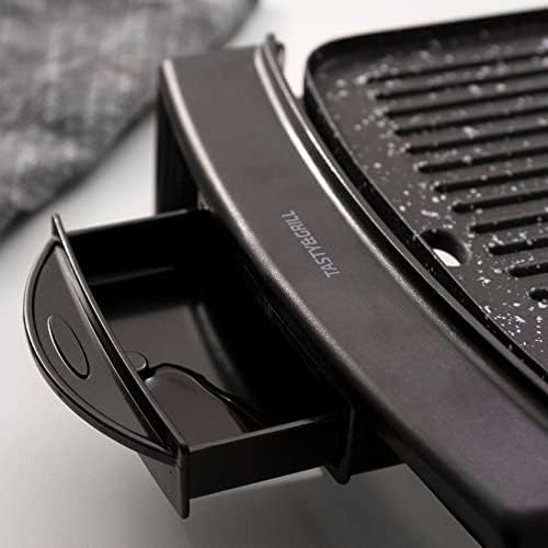 Placa con revestimiento de piedra RockStone de gran dureza y antiadherencia para una mejor limpieza. Evita que los alimentos se peguen consiguiendo mejores texturas y sabores. Facilidad de limpieza. La plancha eléctrica es apta para el lavavajillas.