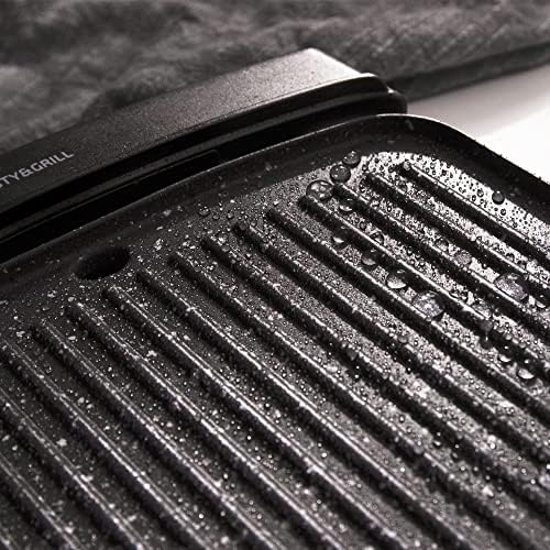 Superficie mixta de grill y plancha para cocinar desde carne y verduras, hasta huevos fritos, marisco, pescado e incluso crepes.