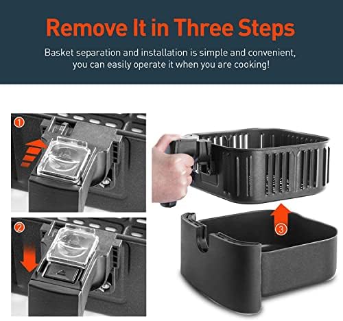Los alimentos fritos no significa un desastre. ¡Retire las cestas y sepárelas, luego deja que su lavavajillas se ocupe de limpiarlas! Los materiales de la canasta no contienen PFOA.