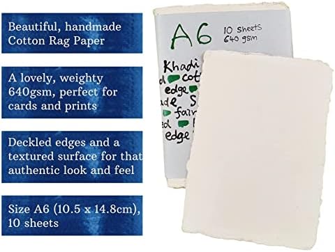 Juego de 2 componentes de papel de algodón hecho a mano (A6, 10 hojas, 640 g/m²), cepillo de espuma, paquete de 3 (2,5 cm, 5 cm y 7,5 cm). Tarjeta postal de consejos y trucos