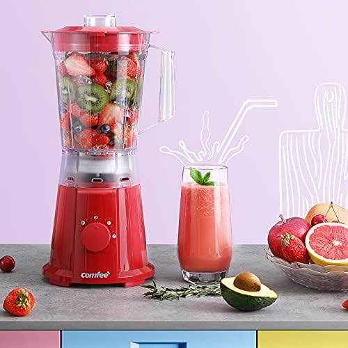 COMFEE’ Batidora de vaso de 1,5 litros, robot de cocina, batidora multifunción de 600 W con 2 niveles de velocidad y función de impulso, color rojo