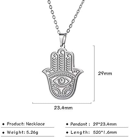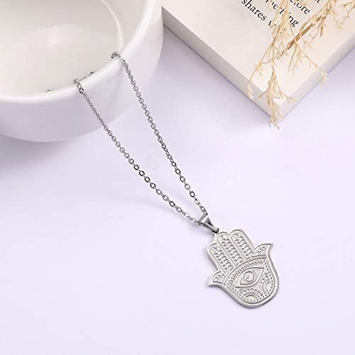 cooltime Collar para mujer de acero inoxidable Hamsa mano de Fátima mal de ojo colgante collar amuleto de buena suerte