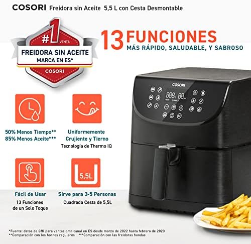 Be the first to review “COSORI Freidora de Aire 5,5 L, Air Fryer con 100 Recetas en Español, Freidora sin Aceite con 13 Funciones, Pantalla Táctil LED, Cocción Rápida y Saludable, Cesta Antiadherente, Temporizador, Negra”