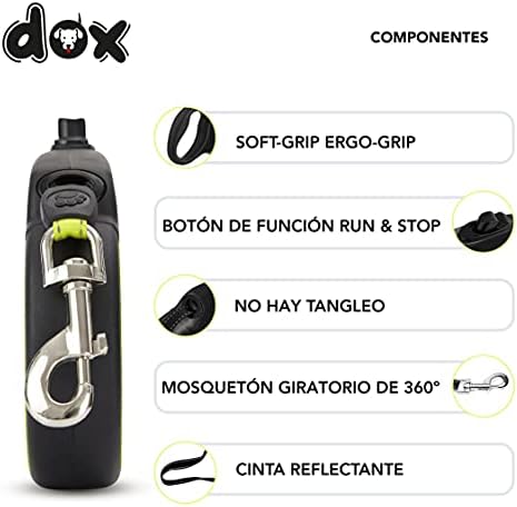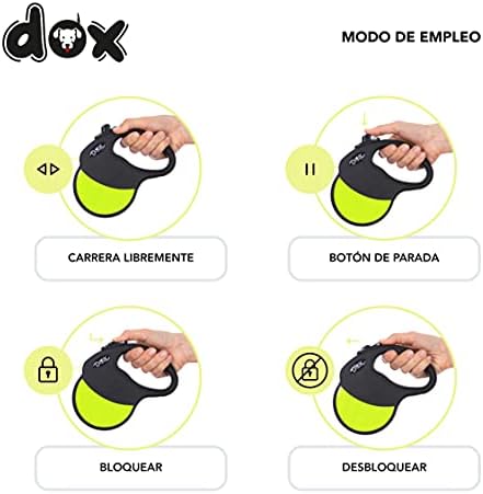 [PRÁCTICO] – El cómodo mango suave, ergonómico y antideslizante se adapta perfectamente a la mano. Con el sistema Break & Lock podrás detener, arreglar y soltar la correa fácilmente con solo presionar un botón. Las correas están disponibles en diferentes versiones: longitudes de 3, 4 o 5 metros y hasta un máximo de 8 kg, 10 kg, 20 kg o 50 kg y en varios colores: negro, rojo, azul, rosa, negro-amarillo fluorescente.