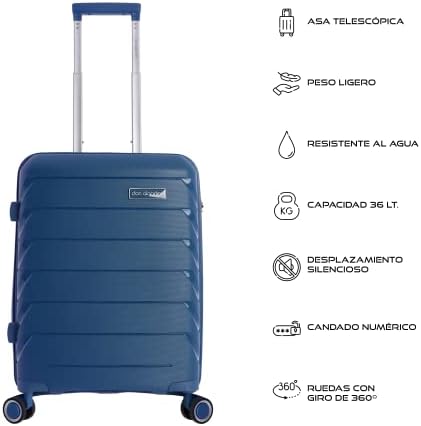 Esta maleta no es solo un objeto de belleza, sino una fortaleza construida para durar. Fabricada con polipropileno de alta resistencia, supera en durabilidad y resistencia a otras maletas de cabina fabricadas solo con ABS. esta maleta cuenta con ABS + Polipropileno.
