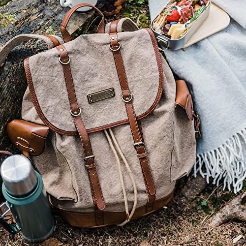 DRAKENSBERG – Mochila clásica de senderismo y ocio en diseño retro vintage, compartimento para portátil de 13″, damas, caballeros, hecha a mano de forma sostenible, lona, cuero