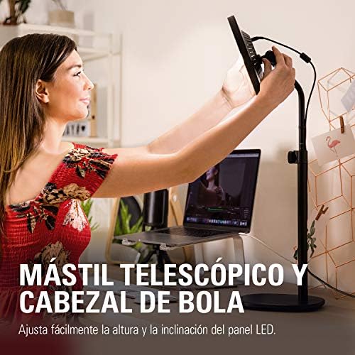 “Elgato Key Light Air es un panel independiente de iluminación con conexión Wi-Fi y 80 LED OSRAM de alta calidad que generan 1400 lúmenes para aplicaciones profesionales de estudio. Usa la app Control Center para encender/apagar, ajustar el brillo, cambiar la temperatura de color, etc. Especificaciones técnicas Luz: Brillo: 1400 lúmenes, ajustable Intervalo de color: 2900 a 7000 K, ajustable CRI: > 92 % Consumo energético: hasta 25 W Conexión: Wi-Fi, 802.11 b, g, n Cifrados compatibles: WPA/WPA 2 Dimensiones: 205 × 205 × 35 mm Peso: 550 g Montura con cabezal de bola: tornillo de 1/4 pulgada Mástil telescópico: Longitud ajustable: 60 a 89 cm / 24 a 35 pulgadas Base: Dimensiones: 205 × 205 × 18 mm Peso: 1000 g Requisitos del sistema Para la configuración inicial: PC o Mac, o dispositivo iOS o Android, con Wi-Fi”