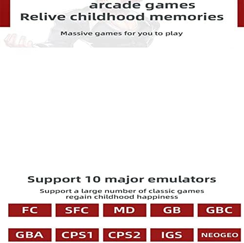 Compatible con FC, SFC, MD, GB, GBC, GBA, CPS1, CPS2, IGS, NEOGEO y soporta 10 juegos de simulación, cada simulador es un clásico, traerá buenos recuerdos a los jugadores; juegos clásicos integrados. 8 GB de 4849 juegos clásicos integrados, puedes jugar tan pronto como obtienes la consola de juegos, sin necesidad de buscar descargas.