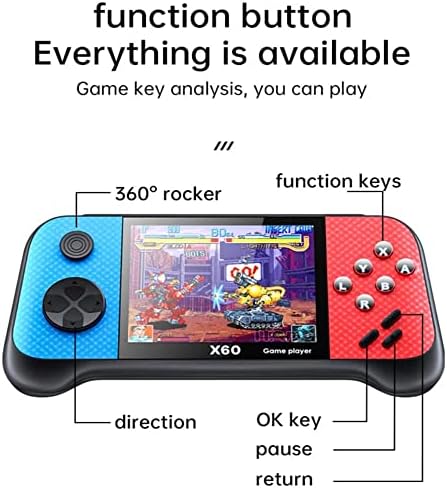 Consola de videojuegos retro portátil X60 viene con 2 asas adicionales, consola de juegos 4849 juegos integrados soportan 10 simuladores AV Out