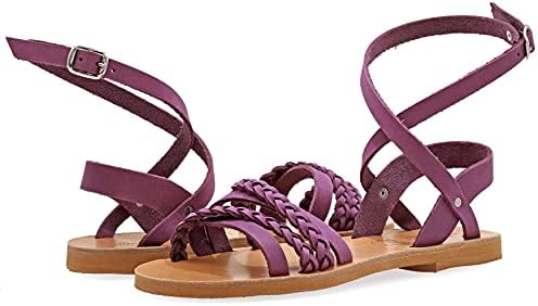 Emmanuela Sandalias de estilo griego antiguo con correa ajustable con hebilla, hechas a mano, sandalias planas de piel con puntera abierta, zapatos de verano para mujer