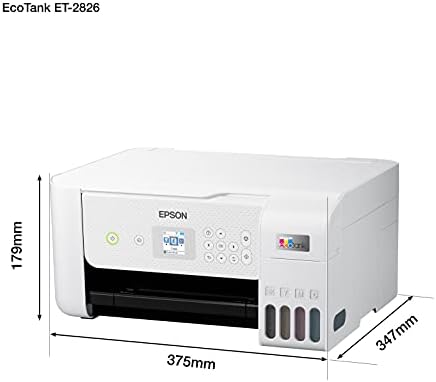 Epson EcoTank ET-2826, Impresora WiFi A4 Multifunción con Depósito de Tinta Recargable y Pantalla LCD, 3 en 1: Impresión, Copiadora, Escáner, Mobile Printing, Blanco