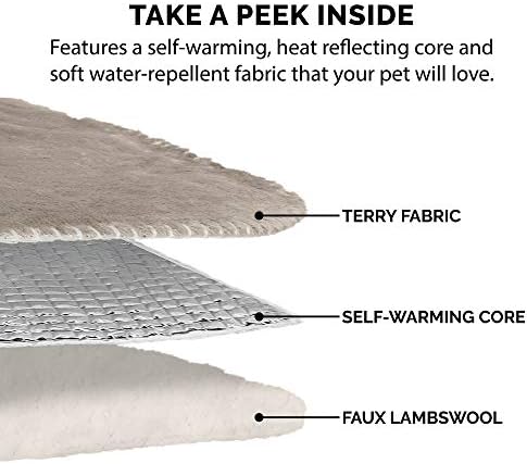 Furhaven,Alfombrilla de cama para mascotas con aislamiento autocalentamiento, y alfombra de baño de chenilla absorbente para perros y gatos, disponible en varios estilos y tamaños
