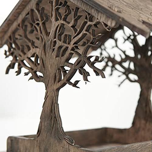 GMZS Alimentador de Aves de Madera, Balcón Alimentador de pájaros, Cuelga Pájaro Pájaro Contenedor Atractivo Pájaro de Madera Jardín Regalos Patio