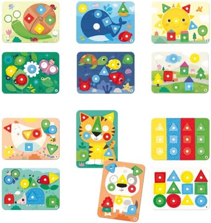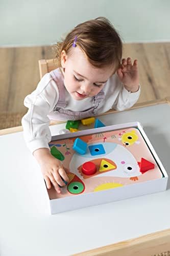 DESARROLLO ESPECIAL PARA NIÑOS: 14 piezas de madera de colores y formas distintas para aprender mientras se completa la actividad de cada lámina.