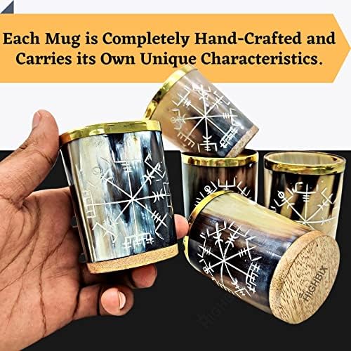 Conquista el día como vikingos y siéntete genial mientras bebes con un cuerno vikingo, trae vivas las tradiciones de la vejez. Cada cuerno está completamente hecho a mano y tiene sus propias características únicas. Cada cuerno vikingo está hecho de cuerno de buey natural auténtico y de origen ético. Apto solo para bebidas frías, lavar a mano. Cada una de nuestras tazas de cuerno está seleccionada a mano, cortada a mano y pulida a mano para casi la perfección (decimos “cerca” porque como artículos hechos a mano, ningún cuerno es completamente perfecto). Producto fabricado en la India por los mejores artesanos indios.