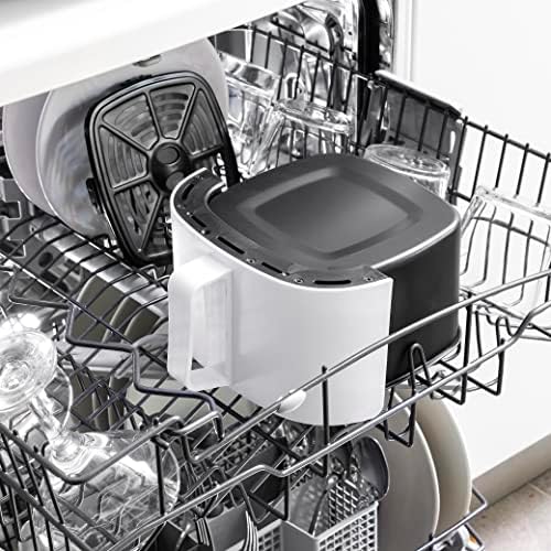 🧽【LIMPIEZA Y MANTENIMIENTO】Algunas recetas requieren la utilización de recipientes aptos para freidora, preferiblemente de silicona. Para evitar dañar la capa antiadherente de la cesta, se recomienda no utilizar recipientes de metal ni materiales de limpieza abrasivos. La cesta extraíble es apta para lavavajillas.