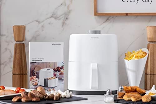 InnovaGoods® Freidora de aire sin Aceite 2L, 1200W con +100 recetas en Español, cesta antiadherente, temporizador y flujo de aire 360°, para 2 personas Color Blanco