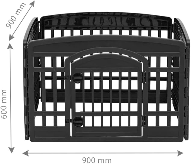 Iris Ohyama, Corral, Jaula, Recinto exterior, Perrera, Casa para perros con 4 paneles, L91.5 x F91.5 x A60 cm, CI-604E WD, Negro