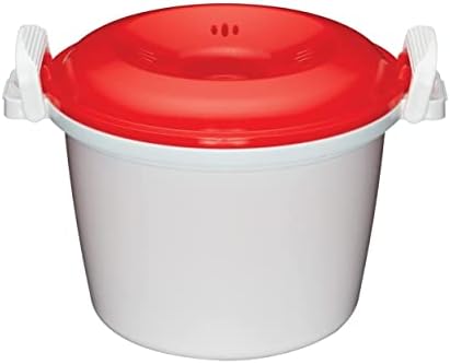 KitchenCraft Cocedor de Arroz – Vaporera para Microondas, Plástico sin BPA, 1,5 Litros, Blanco / Rojo