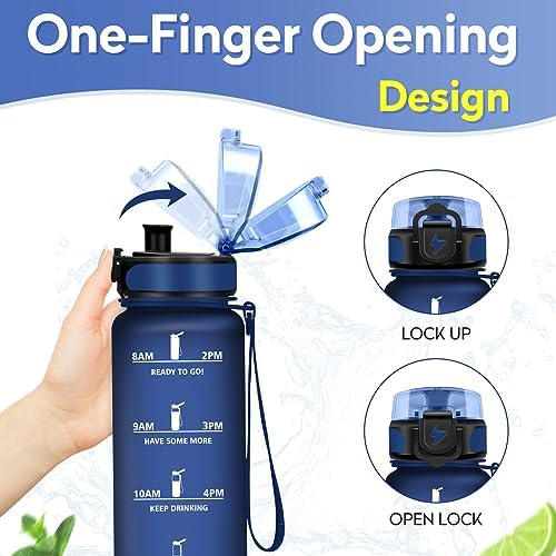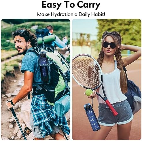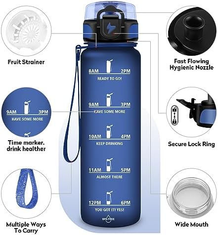 💦 DISEÑO DE CALIDAD PREMIUM: Nuestra botella agua niños a prueba de fugas está diseñada ergonomicamente para su uso con una sola mano. ⏰ Conseguir tu ingesta diaria de agua puede ser muy difícil. Por eso hemos incluido marcas de tiempo en nuestra nueva botella de agua deportiva que te ayudarán a controlar tu consumo de agua y te motivarán a alcanzar tus objetivos diarios. Recordándote que te mantengas hidratado en todo momento.
