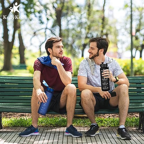 KollyKolla Botella Agua Deporte – 500ML/1L, Botella de Agua Sin BPA & Prueba de Fugas, con Marcador de Tiempo de Motivación, Cantimplora para Niños, Adulto, Gimnasio, Bicicleta, Escuela, Oficina