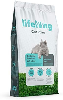 Marca Amazon – Lifelong Arena de bentonita para gatos, Premium con perfume de talco, 25L, Paquete de 1