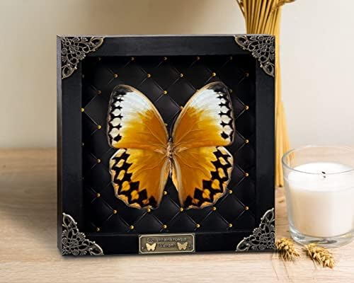 Marco de rombo negro de mariposa real, hecho a mano, caja de sombra de escarabajo, espécimen de insectos, entomología única, rarezas, colección de taxidermia, obra de arte de mesa, decoración del