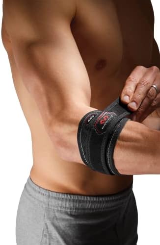 Seguro ajuste y ultra comodidad: la correa del codo de tenis está hecha de un neopreno de piedra caliza de alto rendimiento que tiene una función de memoria: las correas se adaptan a la ergonomía de la persona que la usa.
