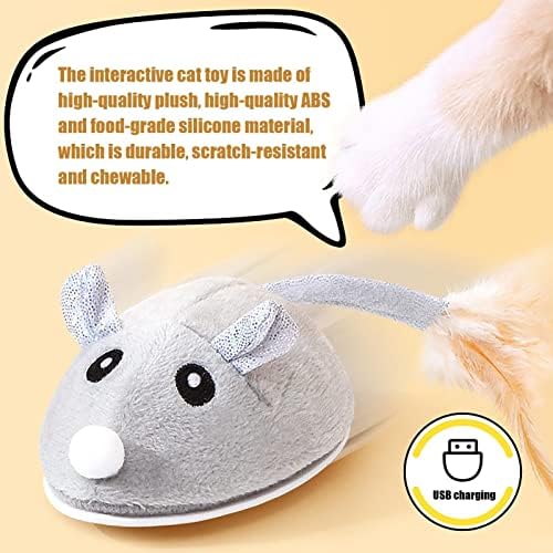 ⇪[Mano de obra sofisticada] El juguete automático para gatos y ratones es fácil de activar el instinto natural de un gato para perseguir y jugar, imita la apariencia, el tamaño y el color de un ratón real, y con solo presionar un botón, comienza a girar con una cola emplumada. diseñado con apariencia de ratones realistas.