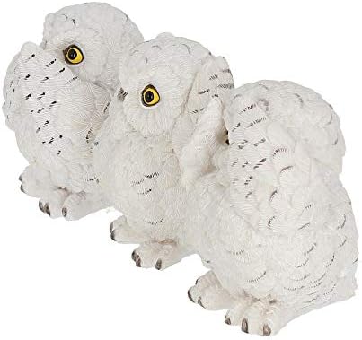 Estos búhos adorables. Son sabios más allá de sus años. Sentados uno al lado del otro, se posan sobre sus pequeños pies de garra. Uno Cubre sus ojos con sus alas, escondiendo un vistazo rápido a través de un ojo, otro cubre su boca en shock, y el tercero protege sus oídos. Ilustrando la sabiduría antigua; ver Ningún mal, escuchar el mal, no hablan mal, estos búhos son echados en resina de alta calidad antes de ser pintados a mano por expertos.