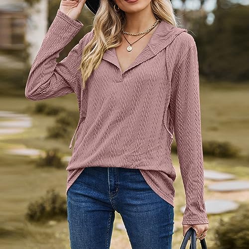 Sudadera con capucha de manga larga para mujer Sudadera con capucha de color sólido con cuello en V Abrigos Deportivos Mujer