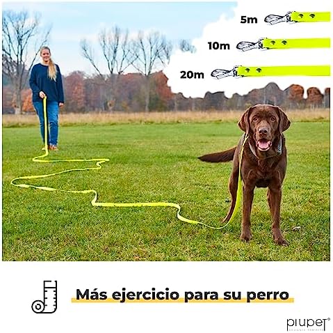 PiuPet® Correa Perro adiestramiento 5m I 10m I 20m I Repelente al Agua I Correa de Remolque para Perros I Correa adiestramiento Perro I Correa Larga Perro I Amarillo neón
