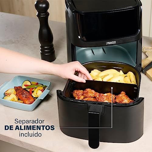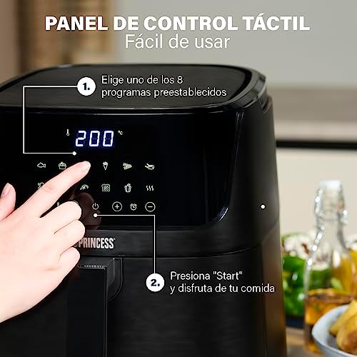 Princess 182061 Freidora sin aceite 6.5 L, super compacta, hasta un 60 % menos de consumo de energía, libro con 30 recetas incluido, panel de control táctil digital, 12 programas, libre de BPA y PFOA