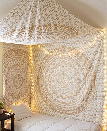 raajsee Mandala Tapiz para colgar en la pared, algodón, color oro blanco Ombre, 140 x 210 cm, individual
