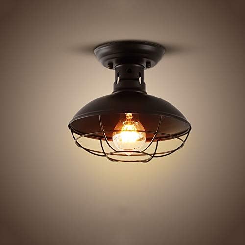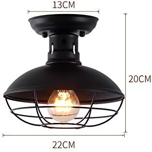 RAGGZZ Lámpara de Techo de Montaje de Semi Rasgador Negro E27 E27 Luces de Techo Retro Cubierta de Hierro Retro Iluminación para el Hogar para la Escalera de Pasillo de Restaurantes Candelera