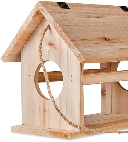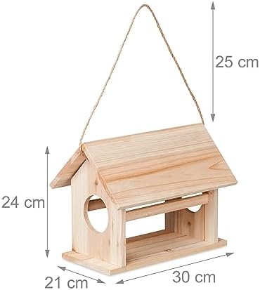 Relaxdays Comedero de Pájaros de Madera, Colgante, Dispensador de Alimentos, Aves Silvestres, 24 x 30 x 21 cm, Natural