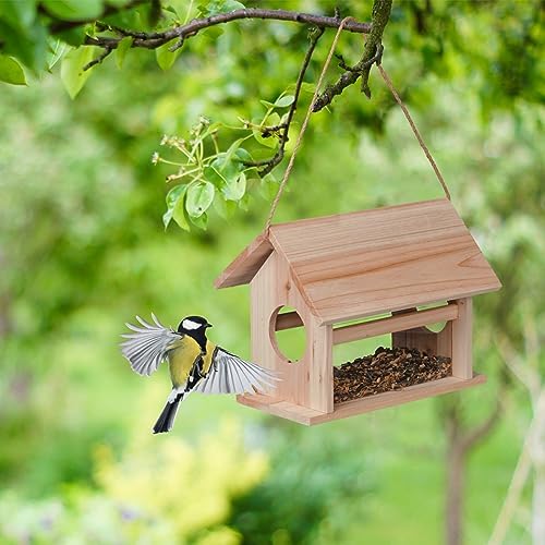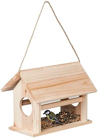Relaxdays Comedero de Pájaros de Madera, Colgante, Dispensador de Alimentos, Aves Silvestres, 24 x 30 x 21 cm, Natural