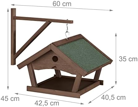 Relaxdays Comedero Pájaros Madera, Alimentador Aves Silvestres Colgante, Forma de Casa, Montaje de Pared, Jardín, Marrón, 35×42,5×40,5 cm