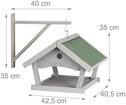 Relaxdays Comedero Pájaros Madera, Estación Alimentación Aves Colgante, 35×42,5×40,5 cm, Jardín, Montaje de Pared, Gris