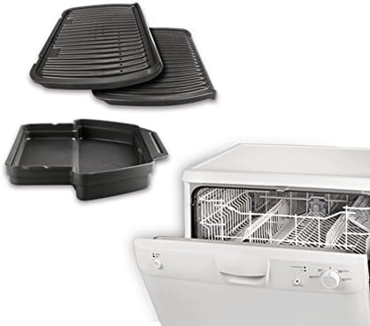 Las placas extraíbles de aluminio fundido antiadherente y la bandeja recolectora de grasa son aptas para lavavajillas.