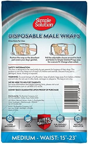 ALIVIO PARA CUANDO SE ALIENTA – Los pañales desechables para perros Simple Solution Male Wraps proporcionan una protección muy necesaria para los perros macho con incontinencia; micción excitable o problemas de marcaje; Para las perras; utilice los pañales para perros hembra Simple Solution