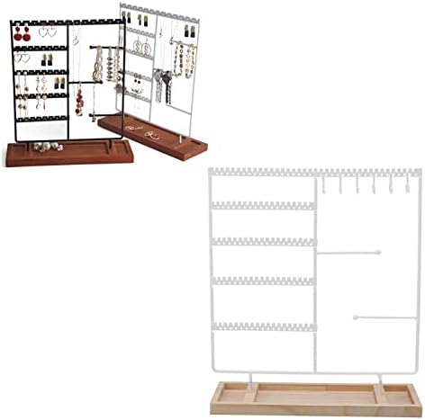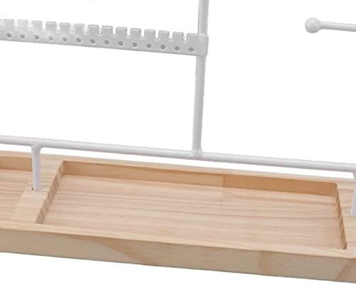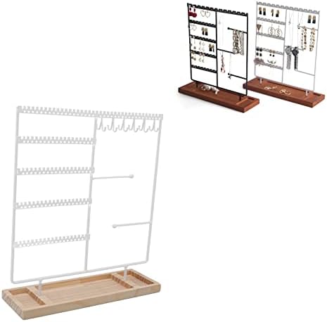 Soporte organizador de joyas Soporte para collar, Soporte para aretes, 5 niveles 90 agujeros 2 Barra de metal Estante para aretes con base de madera para aretes Collares Pulseras Anillos(blanco)