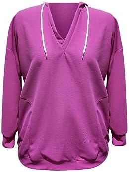 Suéter Casual de Manga Larga de Color sólido para Mujer con Cuello en V Suelto con Capucha y cordón Sudaderas De Pelo Mujer